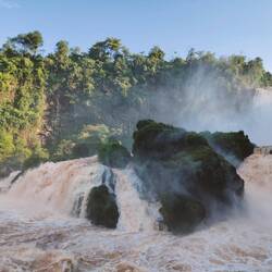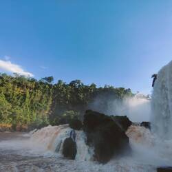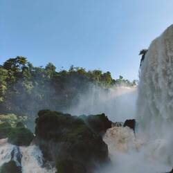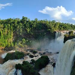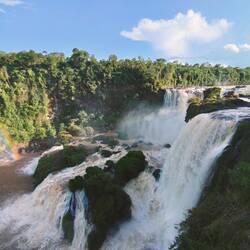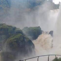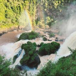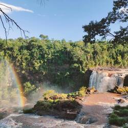 Around 5, we went to Monday Falls. Monday in traditional Paraguayan means "robbed river". After a bit of a shock at the price to enter ($32!) we walked down the path towards the falls. We were greeted with misty rainbows and roaring water. The falls were cascading all around. After getting some pictures and admiring the view from the top, we took a short elevator down to the ground level to see the falls from below. The wind and mist were much stronger and visible down at the bottom. You could see if moving the little plants on the rocks! We enjoyed the beautiful view, and it was a good precursor to Iguazu Falls that we will see for the first time tomorrow.