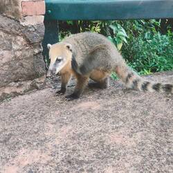The park bus dropped us off across the street from the fancy, and very pink, Belmont Hotel. We were immediately greeted by a cliffside with various waterfalls all pouring off the side. We walked through the jungle for about a kilometer, periodically stopping at different points to get the view of different waterfalls off the cliffs across the river in Argentina. We also had some visits from the wildlife! Some coites came climbing out of the trees and onto the path in search of food. We also saw a few very big lizards, as well as some smaller ones.