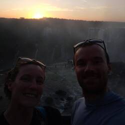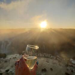 For the rest of the evening we enjoyed the multitude of drinks and top ups, gazed at the waterfall, and watched the sun go down in this spectacular place. The hassle from the border earlier in the afternoon was a distant memory while we enjoyed our evening.