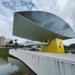 After a shower and time to make a plan for the day, we went out and got an Uber to our farthest location, the Museu Oscar Niemeyer. Shaped like a black eye on a yellow rectangular pedestal, the museum is dedicated to Oscar Niemeyer, a Brazilian architect who designed much of Brasilia. There was also a pond around the building with metal structures that looked like lotus flowers. A bit short on time, we didn't stay long and made our way back to a different shopping center to try for the SIM card again.