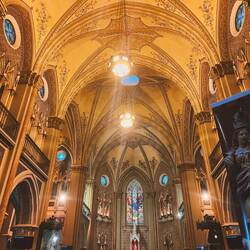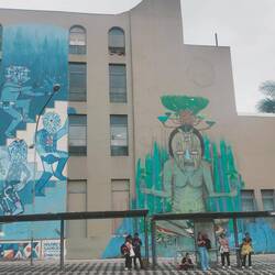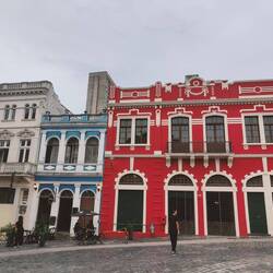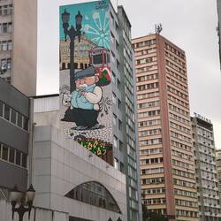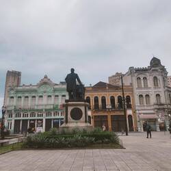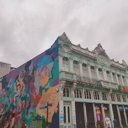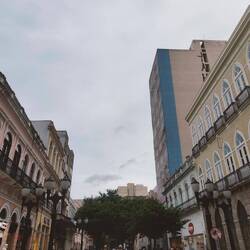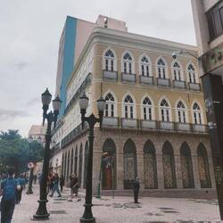 We decided to walk after our panoramic views back to the historic center to see some of the sites we looked up earlier in the day. There were two streets in the center of the historic area: Rua das Flores and Rua XV de Novembro. The streets and paths are cobbled with white and black flower patterns and the buildings are pastel colors with white accents. Quite a few of the more standard looking buildings had some beautiful graffiti reminding me of Bogota. We diverted up a couple of side streets following the pretty buildings and happened upon the Catedral Basílica Menor. It looks like a standard community church on the outside, but inside there were beautiful greens and golds all over the vaulted ceiling and walls. It looked like mass had recently finished so we didn't walk around much.