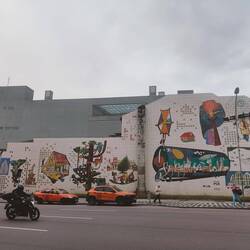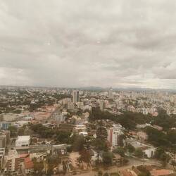 After about an hour, we still, frustratingly did not get a SIM, so we cut our losses and got a late lunch while organizing an e-SIM. Once we left the shopping mall, it was raining so we got another quick Uber to save a 40 minute walk in the rain to Torre Panoramico. The building looks similar to an air control tower. We bought our tickets and took the elevator up. We were greeted with a surprisingly good view over Curitiba. It hadn't felt like we'd gone very high, but we had 360° views over the entire city. In the viewing area there were some landmarks pointed out that we were able to find such as large parks, churches, and other important buildings. It was cloudy and we could see storm clouds in the distance.