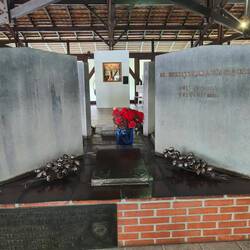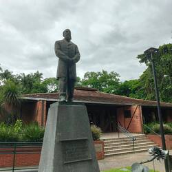 After we visited the church we went back to the main road stopping in at a couple places along the way. The first was a museum dedicated to Dr. Blumenau and his family, namely his niece who lived in the exact house we were in. Dr. Blumenau lived in a house just behind hers that was washed away in a flood, but some of his furniture and personal items survived. We then continued around the corner through the cat garden to the mausoleum (his niece loved cats and owned about 50 throughout her life so the garden is where she buried them behind the house). The mausoleum was a simple building, but contains the remains of Blumenau, his wife, and his two children. He died while I'm Germany and was originally buried there, but his remains were eventually brought to Blumenau where he considered his true home.