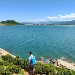While we were walking along the trail, we encountered a couple of military area signs, so I was ready to get to the lighthouse and get out. Once we finally got there, it seemed like an abandoned military area, but I was still nervous and didn't go near the lighthouse like Allan did. As far as lighthouses go, it was pretty short and didn't seem to have a light on top, so I wonder if it's still working. We then went around the corner to an opening in the jungle to see the water. It was very beautiful and peaceful here. We considered having lunch here because it was so quiet, but there was no shade and it was very hot.
