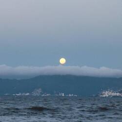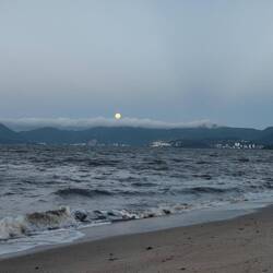 We left the northern point and headed off towards our accommodation off the main island. We stopped at a viewpoint along the way. It gave us some spectacular views over the city from several different angles. After that, it was a short drive to the house. When we arrived, a little old woman warmly greeted us and showed us to our room. It was a nice house and very clean which was a welcome change after the previous night in the rough and ready chalet. We got settled and then went out for a walk to the coastline. The sun was just going down, and the moon was rising. It was a big, bright moon in a purple and pink sky. After our coastal visit, we walked back inland to a cheap pizza place for some dinner. We also hit the grocery store for some breakfast for tomorrow morning.