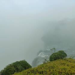 We started the vertice trail which is much shorter than the elbow trail we did earlier. At the first viewpoint we could see a tiny bit of a waterfall through the fog. Our hope was renewed! Unfortunately, this hope was quickly dashed on the rocks because every subsequent viewpoint was cloudy. I was feeling frustrated and bored by this point, but we continued on to finish the trail. On the walk back, I didn't stop at the viewpoints, but Allan did still clinging to the hope that he might see something. Back at the start, we made our way to the deserted parking lot, got in our taxi, and bumped back along up the road.