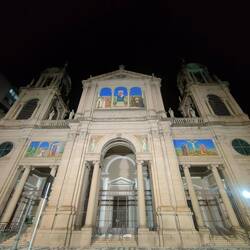 We walked to the Italian place, but there was a line to get in and we were told it'd be about 30 minutes wait. We decided to leave and go to the Subway down the street. Nicer meal plan foiled, we had our sandwiches and then walked into the center to see the theater and cathedral lit up at night. They are both nice buildings and the cathedral was huge. I'm looking forward to seeing the inside tomorrow.