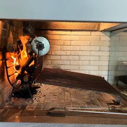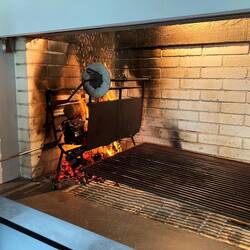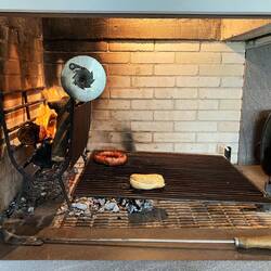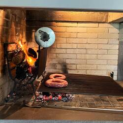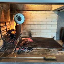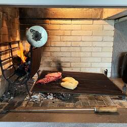 Once we got back to the house, Sylvia and Sergio began to prep the indoor grill for the churrasco. Allan and Sergio ran out to the bakers for some bread rolls while Sylvia and I sort of chatted. She spoke in Portuguese and I spoke in English, but we both understood what the other was saying. It was a very interesting dynamic. Once the boys were back, the fire was beginning to get larger so the meat came out to be prepped for the grill. They had some flavored sausages as well as different cuts of beef to put on the grill. At the side of the grill, logs were lit and stoked until the wood was beginning to break apart. Once they began to break apart, the smaller parts were slid under the grill and the meat was then added to cook. It was really interesting to see a grill working that way, and indoors as well! Churrasco is a very social meal. Sergio explained that as the meat cooks, it is cut up in bit size pieces and eaten as a finger food opposed to putting sausage or meat on rolls like a sandwich and sitting at a table to eat.