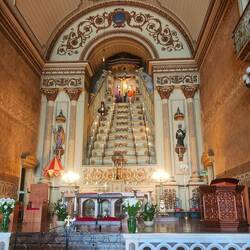 We continued down the street to the church. When we got there, we were glad the other one was closed or we never would have come to this one. There was a long outdoor staircase that led up to the church. It didn't scream Church when you looked at the outside (minus the crosses). When we walked in we were surprised by how bright it was. The interior was a combination of yellows, gold, and light blue. It was one large room with pews that stretched from wall to wall. The altar was interesting because it looked like stairs that led further into the back of the building. It was beautifully and tastefully decorated.