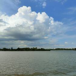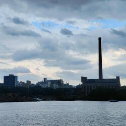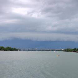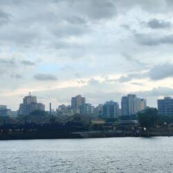 We went under a few underpasses that eventually led to the port. Surprisingly there wasn't much here besides some horrible metal gates, a few crappy industrial buildings, and the boat office for the boat that we were taking on the river. We got our tickets and boarded. It was a three level tourist boat with the top being open and the middle had a bar for refreshments. Once the boat started moving, we popped up to the top deck for a better view of the coast and the small islets in the middle of the river. In the distance we could see some serious storm clouds, and I hoped they weren't headed our way. Alas, they were and about halfway through the hour long boat cruise big droplets of rain started. Everyone rushed back downstairs to the sheltered area and continued watching the scenery. The rain did lighten up, but quickly turned torrential. Neither of us has brought our rain jackets and we still wanted to walk back up to see the cathedral we missed this morning.