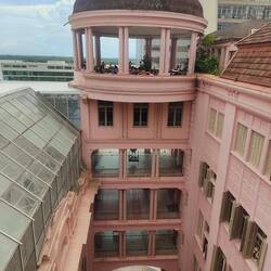 We decided to go for a short walk to the local basilica about 15 minutes away. While we were walking we stumbled upon the cultural center. It was hard to miss because of it's size and the pink color. We took the elevator up to the top to get a slight view over the city towards the water. The circular towers were nice and the building itself was probably better to look at than the slight view the terrace offered.