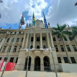 The next stop was the library, Biblioteca Mário de Andrade. We think they closed the fenced area because of the precautions for Carnaval revelers, so we didn't get as close to the building as last time and we couldn't go inside, but I did spot more of the word 'library' in different languages on the path outside the library because I knew to look for it after our guided tour. After that we went back to the Theatro Municipal de São Paulo as well as a few government buildings like city hall. We got just as close to these buildings as before and were able to spot the things that were pointed out to us on the tour.