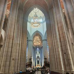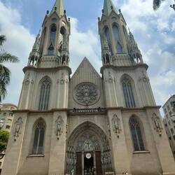 After that we went to the Catedral Metropolitana de São Paulo and visited the crypt as well as walked around the inside. It was a huge building inside and we looked for the Amazon animal Easter eggs throughout the church. We spotted animals like toucans, lizards, and armadillos. This church also holds the largest organ in South America and spreads along the entire back wall behind the main altar. Down in the crypt, all of the bishops of the church are buried. Many of them were originally born in Portugal and moved to São Paulo. The red bricks on the vaulted ceiling contrasted with the black stones for the graves.