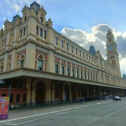 Once our walking tour was done, we decided to walk to Pinacoteca de São Paulo and Estação da Luz. The Luz station is right next to Pinacoteca museum. On our way, we stopped and had a juice while listening to the last five minutes of the England v Scotland rugby game. So disappointing they came so close. We finished the walk to the station and museum. The station was modelled after the station in London and we could really tell. It even had a mini Big Ben at the far end. Before heading into Luz, we visited Pinacoteca. It was a big building, much bigger on the inside that it looks, and is made of predominantly red bricks. There were lots of white accents and columns throughout the interior as well, but that may just be because it matched the vibe for the art galleries. We didn't plan to spend very long here, so just popped our heads into a few of the galleries. Each gallery had a main theme and then smaller themes within the gallery that tied together. For example, one was indigenous artwork but themes of people, colonization, and relationships were throughout the gallery. Once we had a quick explore through the galleries, we walked across the street to the Luz station. The inside looked just like King's Cross. It took us a bit of time, but eventually we found our way down to the metro station and walked for a good ten minutes underground before we got to the yellow line that would take us back towards Paulista Avenue.