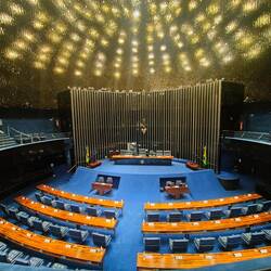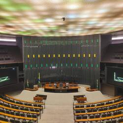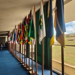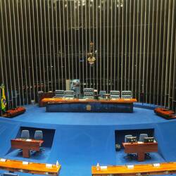 Our day started with checking out of our hotel and a quick Uber back to the Planalto Palace. We missed the changing of the guard yesterday, so our hope was to see it today. According to the Internet, the guards change every two hours, so yesterday we waited until an odd number hour, and they didn't change, so we got there before 10:00 to be at the palace for an even hour. Sadly, they didn't change on the even hour either, so maybe the Internet wasn't up to date about the changing of the guard times. We were a bit bummed to miss it, but fortunately it meant that we were right across the street to the National Congress for our tour at 11:00. When Allan was checking his confirmation email, he realized he accidentally rebooked on the wrong day! We quickly called them and managed to find someone who spoke English. The English tour wasn't until 12:00, which was too close to when we needed to leave for our bus, so we got booked on to the Portuguese tour at 11:00.
