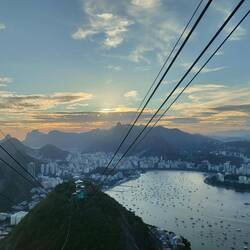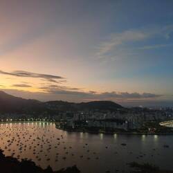 Back at the first peak, we were glad we went to the second one when we did, there was a HUGE line to go up. We made our way to a viewing platform at the first peak and watched the sun dip behind the mountains. We even saw a little monkey while we were here! After the sunset, we debated heading back down to ground level before the line got really long. In the end, we decided to stay and watch the sky change colors and see the lights of Rio from above. We also shared a black IPA while we watched (it was a lovely beer). We had some pretty purples and pinks of dusk, and Rio at night was beautiful with the twinkling lights on the coast and randomly dotted around the mountains and valleys. We did end up having to wait in a fairly long line to get back down in the final cable car, but it was worth it to see the city views.