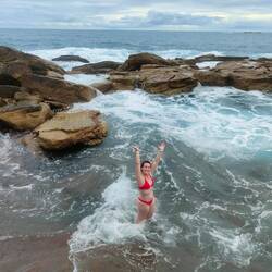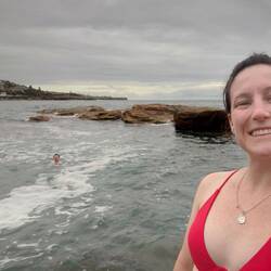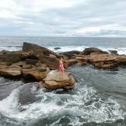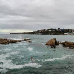Once at Coogee, it was a further 6km on top of the nearly 13 we had done already. The travel and jet lag were definitely starting to get to me, so we stopped at Coogee Beach and went in some of the saltwater pools near the cliffs instead. When I first dipped my feet in, it felt cold (not as cold as Rio, but still cold). When the waves got higher, I got a shock from the chilliness, but over time my legs didn't feel the chill as much. We sat and enjoyed the water for a bit, but it started to get busy so our pocket of peace was broken.