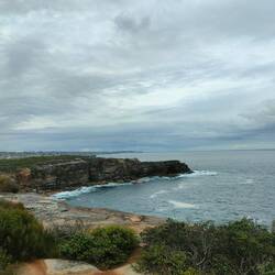 Marg mentioned that we could start the coastal walk at Little Bay Beach, but we couldn't see a path that didn't go through the golf course, which wasn't allowed, so instead went inland around the golf course and the local prison. Once we got to Malabar Beach, we entered Malabar National Park. We walked along the coast over sandstone and vegetation on a metal grate to not disturb the environment. It was a peaceful walk and we encountered some people running through the park, but not many other tourists.