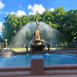 After breakfast we got a couple buses from Little Bay into the City Center. Our first stop was St. Andrew's Cathedral. We almost walked past the small cathedral because it was hidden behind some tall trees. The doors were locked when we got there, but an information poster listed dates for free lunchtime concerts on Wednesdays, which was today! The concert was in about 45 minutes, so maybe they were getting some things ready. We decided to visit some nearby sites and come back for the concert.