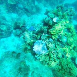 Immediately after sticking my face in the water, I saw so many colorful fish. There were big ones, small, and everything in between. The reef where we first jumped in had some colorful spots, but as we swam across to the other side of our area, it got super colorful. I particularly loved the blue staghorn coral and a small neon purple coral. The fish were also so colorful which makes sense to blend in with colorful coral, but I'd never considered that before. Obviously, not all fish and coral were bright, but the bright stuff was eye catching and unique.