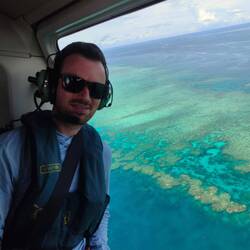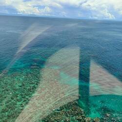 The ride was pretty spectacular. From above, all the colors of the reef and varying depths of water created a collage of blues and greens. We also saw some sharks and turtles swimming around the reefs, which surprised me that they were so visible from up high! It was a smooth ride, and the weather was perfect to see everything. I can see why my dad loved flying! It's definitely an experience we'd like to do again.