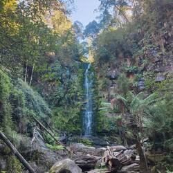 We drove under the arch towards the village of Lorne. Once at Lorne, we diverted inland to Erskine Falls. We parked up and walked a short way through the forest to the waterfall. It was a bit underwhelming, mostly because there clearly hasn't been a lot of rain. We walked further down the steps to the bottom of the falls and it looked nicer from there. The slight trickle was complimented by all of the greenery and many small pools that the waterfall feeds into. There were a lot of big chunks of tree, so we think that the water can flow much more powerfully than we saw it today.
