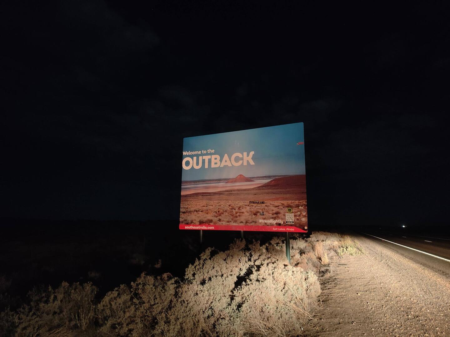We got back on the road to drive to a rest stop about 30 km outside the town. We saw the sign saying we were entering the outback, and that's when the animals started coming out. There were some kangaroos, but the surprise was when a goat nonchalantly walked across the road! Not what I expected to have to stop for...