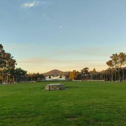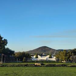 We left as they shut the door behind us. We needed to charge the car, and the Parliament parking lot has chargers. We got it all hooked up and took a small walk out front to get pictures of the building and also managed to see Old Parliament House and some foundation stones. We were disappointed when we got back to the car and saw it had barely charged. Allan went out and got some more pictures and I changed my clothes for dinner with Penny. She has messaged to say her parking lot has chargers, so we abandoned Parliament and drove to her apartment block, later than planned (I'm sure there's a theme here for this day...). We managed to find a charger, and downloaded the app at an agonizingly slow pace, only to click "charge" and discover the charger wasn't the right shape for the car. We drove to a new charger, downloaded that app and finally got it on charge. Poor Penny was catching us at the end of a long and busy day!