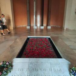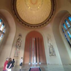 I know what you're thinking, the war memorial is number 1? Really? Yes, really. The memorial is housed inside of a museum dedicated to the Australians that fought in WWI and WWII. It also has sections for wars fought during the Cold War era and modern day. With only about 25 minutes until they closed, we raced up to the main event, the Roll of Honor and Memorial Hall. A huge domed room has stained glass windows with different types of service members, such as nurses, soldiers, etc. in the center is the Tomb of the Unknown Australian, similar to that in Westminster Abbey. In the front do the Memorial Hall is a reflection pool and the everlasting flame. On two sides of the domed hall are all of the names of men and women who lost their lives fighting for Australia. Red poppies are placed in the crevices between bronze panels with striking effect. After visiting this area, we tried to see some of the galleries, but they were getting closed off due to the imminent closing time. A bit annoyed by that, I decided I'd come back tomorrow and have a proper look. It's just a shame that Allan didn't get to see it all.