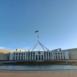 The downside to Allan making friends with the campervan people, was he chatted a bit too long, which made us leave Sydney later than planned to get to Canberra in time for our tour of Parliament at 3pm. When my subtle hints to leave didn't work, I had to say we would be late for our reservation. We drove slightly over the speed limit, but with the electric car we also had to drive efficiently in order to make it to Canberra on a single charge. Allan called Parliament to let them know we'd be a bit late which they said was ok. That made me feel better about slowing down to drive efficiently. We managed to get to parliament with about 25km left on our charge. It was close, but we made it!