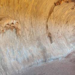 We went back to the start of the Mala Walk to begin the Base Walk. This time, we got to spend time reading the signs and actually learn a bit about the area of rock we were looking at. One of the first sections of rock, the Itjaritjarik Yuu, looked like a large mole, and the aboriginal people believe that the marsupial mole woman built it and dug it out as a shelter. It really did look like a mole! A little bit further on was Kulpi Nyinkaku, a reaching cave with rock art to help teach young men about the world. Women were not permitted here.