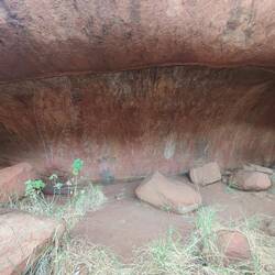 The Mala Walk was lead by an aboriginal ranger. Throughout the walk he took us to a few sights. Unfortunately, I don't think I really learned very much beyond, white people are ruining the land and he wants aboriginal people to have more of a presence in the national park. He also told us that some sights are sensitive and we shouldn't take pictures of them. Some areas of the rock were used by men, and others by women and those stories are shared by male or female elders, but only with the young people of that gender. He also told us the Mala story about the Mala people that came to the rock, held an inma, ceremony, and were attacked by a nearby tribe when they didn't leave their inma and join the other one. That story was interesting, and we learned more about it when we read the signs at the start of the walk.