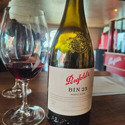 A lovely man served us our first wines, two whites. He was really knowledgeable about the wines and the winery, and just had good chat. Many wineries served us Riesling from vines in the Clare Valley north of Barossa and Penfolds was no exception. We also had a Chardonnay, which Allan enjoyed. Then we got to the red wines, and we had a special tasting menu because it was Easter! Out of the wines we tasted, the St Henri Shiraz took the day for me. It was oaky but smooth and fruity. The last wine, a Shiraz, sells for $200 a bottle, so to have a taste felt pretty special. And it was a lovely wine, but not for that price 😞.