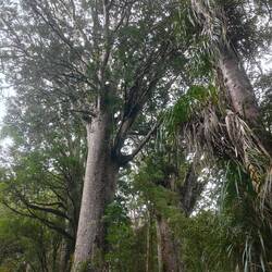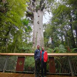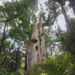 We got back in the car and drove a short distance to a different part of the forest to see the oldest tree, The Matua Ngahere, "Father of the Forest". The path was gravelly with occasional boardwalks when kauri trees were nearby the path. The kauris have shallow feeding roots that are easily damaged by walking over them, so the boardwalks help protect them. It was about 15 minutes walk to reach the tree through the kauri forest where we saw lots of kauri trees of varying size, height and width. When we got to The Matua Ngahere it was obvious. The tree is huge at the trunk. Many of the limbs have broken off, so it didn't look as majestic and tree-like as Tane Mahuta, but it was still an incredible sight.