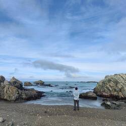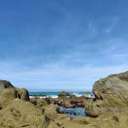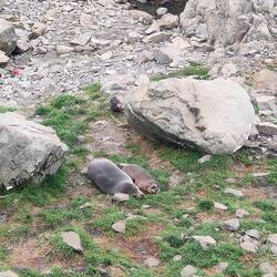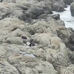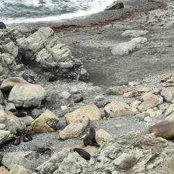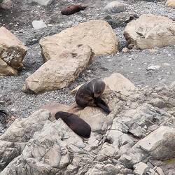 We continued on after our seal stop until we reached Fyffe House in Kaikōura. We stopped here and got out to see one seal moulting on the rocks. We got back in the car and drove around the top of the peninsula parking the car at the end. We walked from the parking lot over the rocks to the sea. We saw a handful of seals here, but nowhere near the amount we saw when we pulled off. It's been the unplanned stops winning the day today!