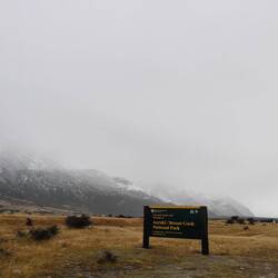 When we got the visitor center, it wasn't busy and a helpful ranger explained that minus Hooker Valley Track (closed around Easter time and we knew it was closed), all the trails were open. With the fresh snow and low lying clouds, we ruled out our plan B, Sealy Tarns. The 2,000+ steps in fresh snow to see absolutely nothing didn't appeal to either of us. Plan C was to walk to the first bridge at Hooker Valley and to back track and walk to Kea Point. It was then a short drive from White Horse Hill Campground to Tasman Lake, so we put that in the plan too.