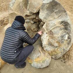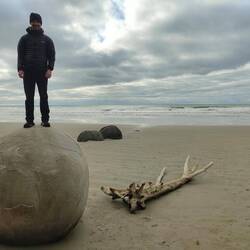 We walked amongst the seals to the edge of the cliff before turning back. We didn't want to disturb them by getting too close or in their way. Back at the car, we drove a little bit further back on ourselves to the Moeraki Boulders. We walked about 400m down the beach until we were amongst the round boulders, most buried in the sand from being on the beach and washed over with sand and sea daily. We also saw some boulders that must have been pushed into the cliffs and burst open. The shards of rock have crystallized along the edges where salt water has gotten in and interacted with the rock. There were a few boulders that hadn't burst open, but the cracks were a honey crystal color, like veins.