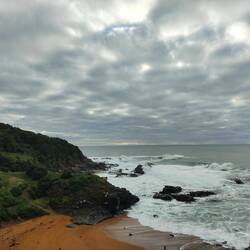 We woke up to the sound of crashing waves and the sun just about to come up beyond the horizon. It was still cloudy, so it wasn't a dramatic sunrise, but we could see a change in the amount of light. We enjoyed our ocean view for a bit before getting going. We had some breakfast before leaving the campsite.