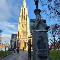 After Speights we walked along Rattray Street past The National Bank of New Zealand and Garrison Hall which had a unicorn on the front at the entrance. When walking through the small Queens Garden we stopped at the Cenotaph honoring lives lost in WWI. The final stop was an unplanned one after seeing it on a hill on our way back to the car and had us walking back into town. The First Church of Otago was a nice stone building with a tall spire. The inside was closed for renovations so we admired the church from the outside.