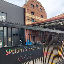A short walk around the corner and down the hill was a large brick building, the home of Speights Brewing, the oldest brewery in Dunedin and one of the oldest in New Zealand. It was pretty quiet around the brewery despite the fact that they enrun tours daily. We went into the alehouse, their pub connected to the brewery, and ordered a tasting board of the 8 beers they had on draft. It was a fair mix of different things like the gold medal ale, IPAs, a porter, even ginger beer and cider. We enjoyed all of the beer we drank here, but especially the hazy pale ale and porter. The low carb beer was by far the least favorite.