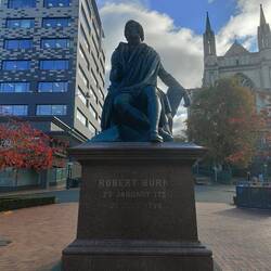We continued the walk from the station straight up the street until we hit The Octagon. The Octagon is the center of the city with shops, pubs and cafes along the edges. In the middle is a statue of Rabbie Burns (they called him 'Robbie') as well as some park benches and awnings. Two of the streets that branch from The Octagon are Princes Street and George Street. I was noticing that Dunedin, named for the garlic version for Edinburgh, is a big copy and paste of Edinburgh, but also like if Chat GPT made the copy. It's similar, but not quite right at the same time.