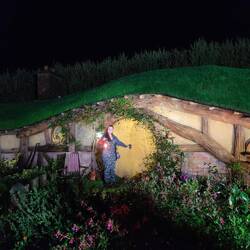 Dessert was a bit of a rush before we were whisked back outside, this time with cute little lanterns. We walked back along the water and saw all the hobbit holes with their windows lit up and lanterns outside the doors. It was super cute to spot them all dotted along the hill. I got a picture at one of the yellow hobbit doors before getting back on the bus to leave Hobbiton behind.