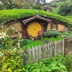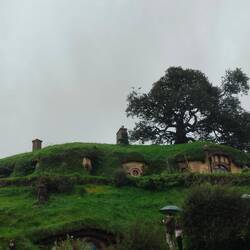 Hobbiton was incredible. The rain held off for the most part and only occasionally got heavier for brief spells during our tour. The walk took us to all 44 hobbit holes and the guides shared movie clips and facts along the way. It was just like the movies and at any moment it seemed like Frodo, Bilbo, Gandalf, or even Samwise Gamgee could have come walking out of the holes. Of course, they really couldn't have as only a few aren't just the facades under the hills. Bag End was huge. Even without going in, it was massive and had a whopping 12 windows. It was easily the highest and biggest hole in the Shire. All scenes inside the hobbit holes were filmed on sets and none were filmed here, it was exterior filming only. They explained the percentage of size and height to make certain characters appear smaller or bigger by walking and filming past different sized doors and holes.