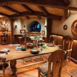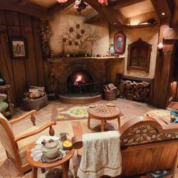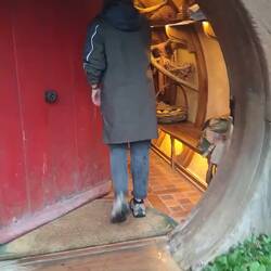 Something that's only been introduced in the last few years is the chance to go inside a hobbit hole. Like I said, no filming was done inside of them, so no interiors were made. Two holes were dug out a few years ago and I'm a combined effort with the movie tour people and the art directors, plans and designs were made and executed for the two interiors. I only saw the inside of one, but it was amazing. There were so many small details and it was so much bigger than I expected. They really thought of everything right down to the toys in the kid's room, tea cozies on teapots, and shelves of awards like "biggest brussel sprout award". Even the kitchen had a little well with a moveable bucket that went up and down and the stovetop was warm. There was also a real, roaring fire in the fireplace and it was so cozy I could have stayed there all day.