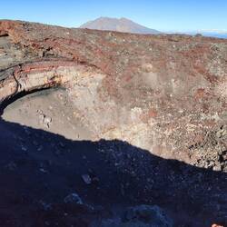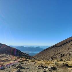We walked diagonally through a lava field to rejoin the path and not long after rejoining it, we began the main section of ascent on the trail up past Red Crater. The crater was pretty cool and reminded me of the red clay in Hawaii. I guess if its all volcanic based that would make sense. I huffed and puffed my way up the steep section to the fake top, and let out a small groan when I realized there was one more small steep section before the actual highest point on the trail. When we made it up, I looked back on Mount Doom in the distance, a bit incredulous that I actually managed to get up and down the thing, and then walked over the crest of the trail with the mountain disappearing behind me.