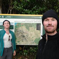 About a kilometer left, Allan messaged to say he was heading towards the finish parking lot. I texted back to say I only had a kilometer left so I wouldn't finish long after he arrived. I really didn't want to give him more walking to come and meet me like I knew he would. However, with about 300 meters to go, I saw him walking towards me. We finished the last couple hundred meters together and took our victory picture at the sign before I got changed in the car on the way to Gollum's Pools.