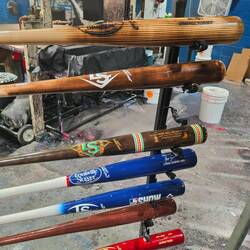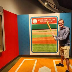 After our factory tour, we collected our mini bats as our tour token and then had a walk through the museum. There was so much to see and I was in baseball heaven. I can only imagine what it would be like to go to the Baseball Hall of Fame. We saw lots of statistics about batting averages and home runs. It was pretty special to see bats used to break records like Babe Ruth and Hank Aaron. One of the last sections we walked through you had the opportunity to hold a bat from a player. They had current players' bats, but also historic ones. I couldn't resist and held the bat that was once held and played with by Babe Ruth. There were so many good ones to choose from though.