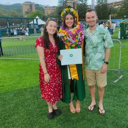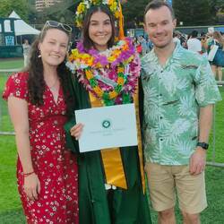 Our morning was relatively chill because Hannah's graduation was only due to start at 3 in the afternoon. We got to sleep in and have our coffee and breakfast fairly relaxed. Before lunch I headed out to meet my mom and dad to run some errands. Our first stop was to get a fresh flower lei for Hannah. It is a custom in Hawaii to give graduates lei, so we all needed to get a lei for Hannah. I picked out a purple and green orchid lei.