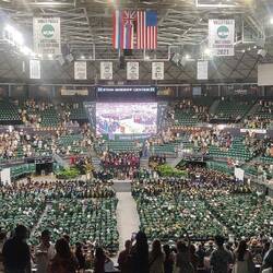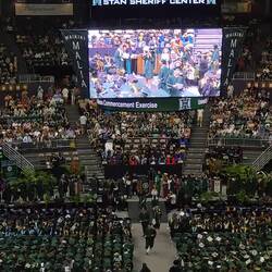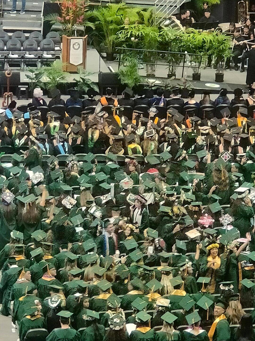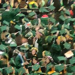 After running the errands, it was quick back to the hotel to get changed and then we went to go and pick Hannah up and head to the university. We were running a tad bit late, so finding parking and then seats in the arena with enough together for all of us was a bit stressful, but we got some! The ceremony wasn't too long, but the acoustics and microphone weren't great, so we struggled to hear the speeches. Hannah's kinesthesiology degree was towards the end of the degrees awarded, so we had to wait a while for her turn. It did mean that after she got her degree it wasn't long until the end of the ceremony! Most people left before all the graduates marched out, but mom, Allan, and I went down closer to the floor area where the graduates were to get a better picture of Hannah.