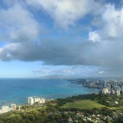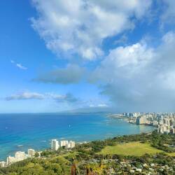 Once we got to Diamond Head, we got our tickets scanned and then began the hike. The sun was already feeling pretty brutal, but luckily Diamon Head isn't a difficult hike. The path is paved or dirt with little rocks. The only annoying things are all of the switchbacks on the way up and many slow people as you get further up the hill. We made good time on the way up and were walking through the tunnel in less than an hour. Then it was a climb up some stairs before we got to some of the viewpoints. It was pretty busy at the top, but we found some room to enjoy the view. It was a relatively clear, sunny day, and the views are still very much worth the walk.